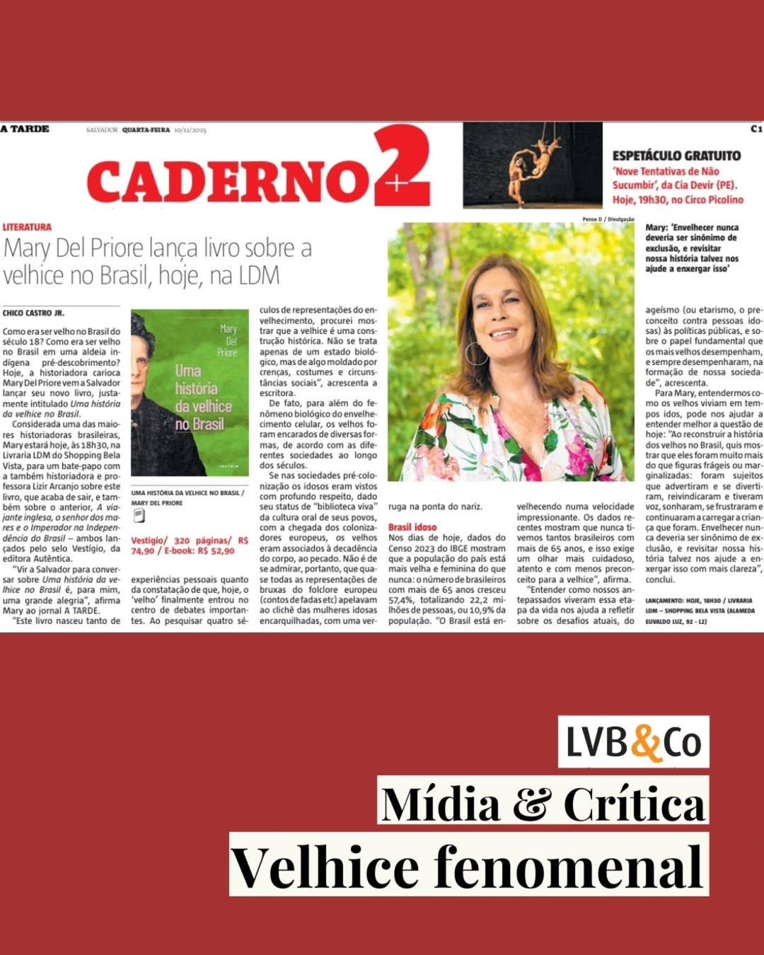 Mary Del Priore (@marydelpriore.ofc) não para de receber convites para falar de sua HISTÓRIA DA VELHICE NO BRASIL, publicado em