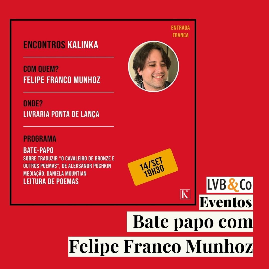 BATE PAPO COM FELIPE FRANCO MUNHOZ Amanhã, dia 14/09, Felipe Franco Munhoz bate um papo com Daniela Mountian, criadora