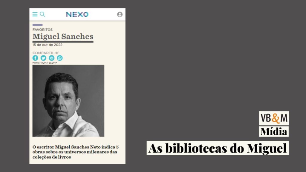 A convite do jornal Nexo, Miguel Sanches Neto listou cinco livros favoritos que homenageiam leitores, outros livros e o amor