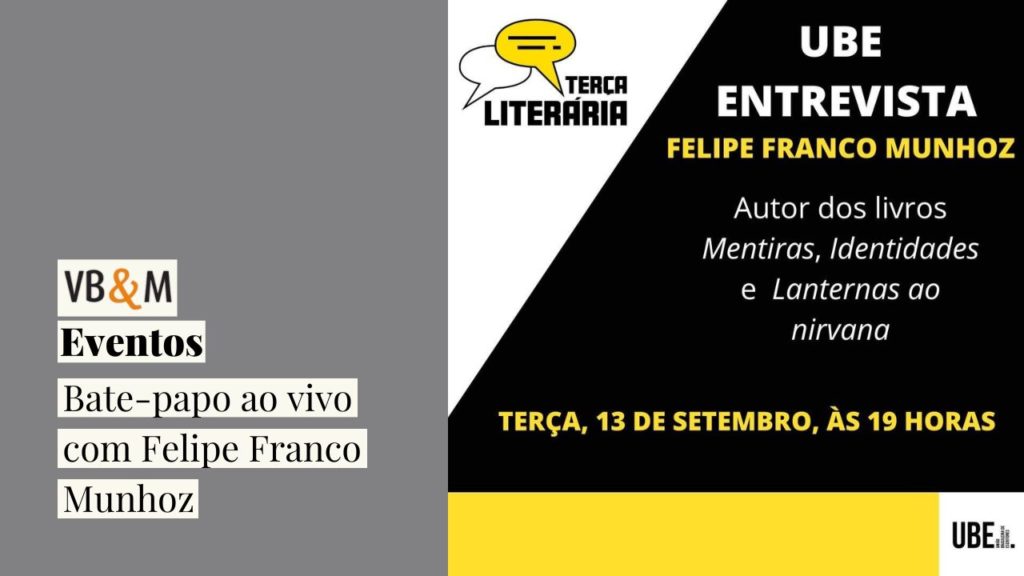 Daqui a pouquinho, às 19h, Felipe Franco Munhoz participará do Terças Literárias da UBE, União Brasileira dos Escritores. A conversa