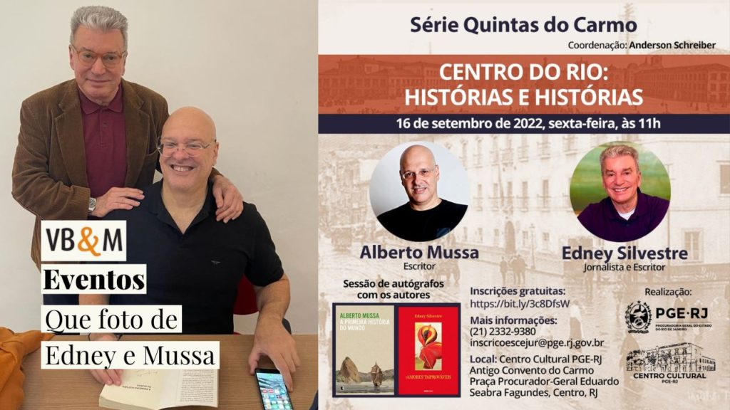Alberto Mussa e Edney Silvestre se encontraram para falar e contar histórias sobre o Centro do Rio a uma plateia