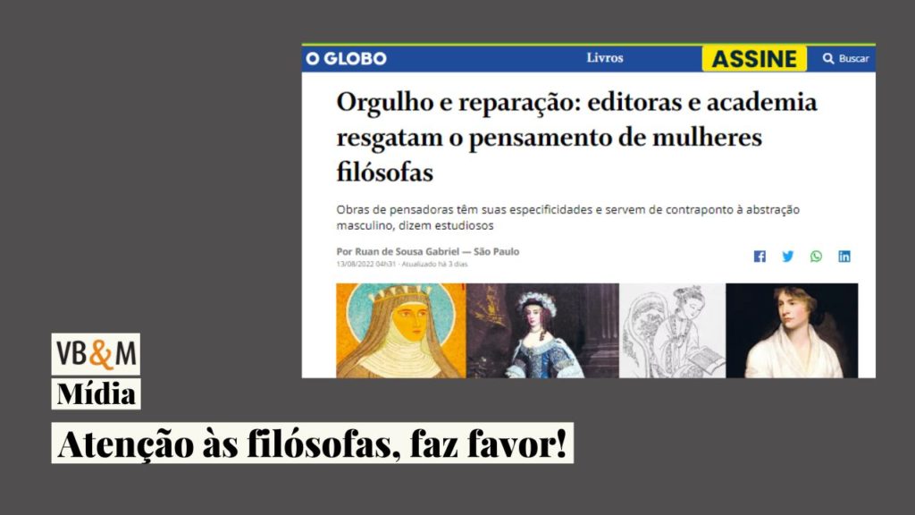 O Globo publicou reportagem sobre o resgate do trabalho e da reflexão das filósofas, durante tanto tempo completamente negligenciados pela