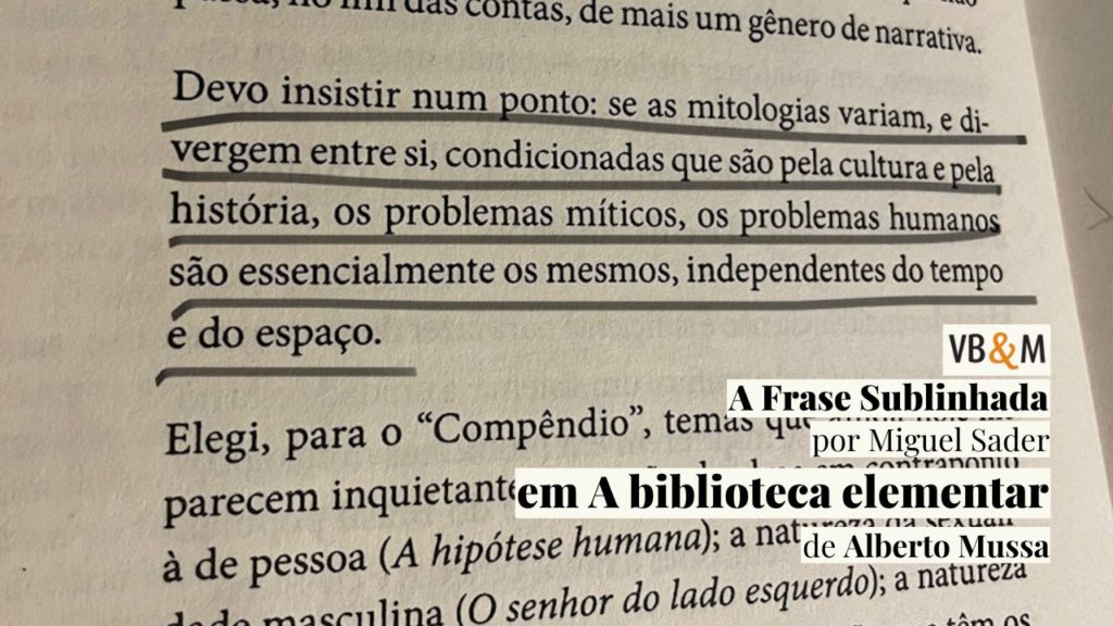A Frase Sublinhada vem da biblioteca de Miguel Sader, agente da casa, do romance A BIBLIOTECA ELEMENTAR (Record), de Alberto