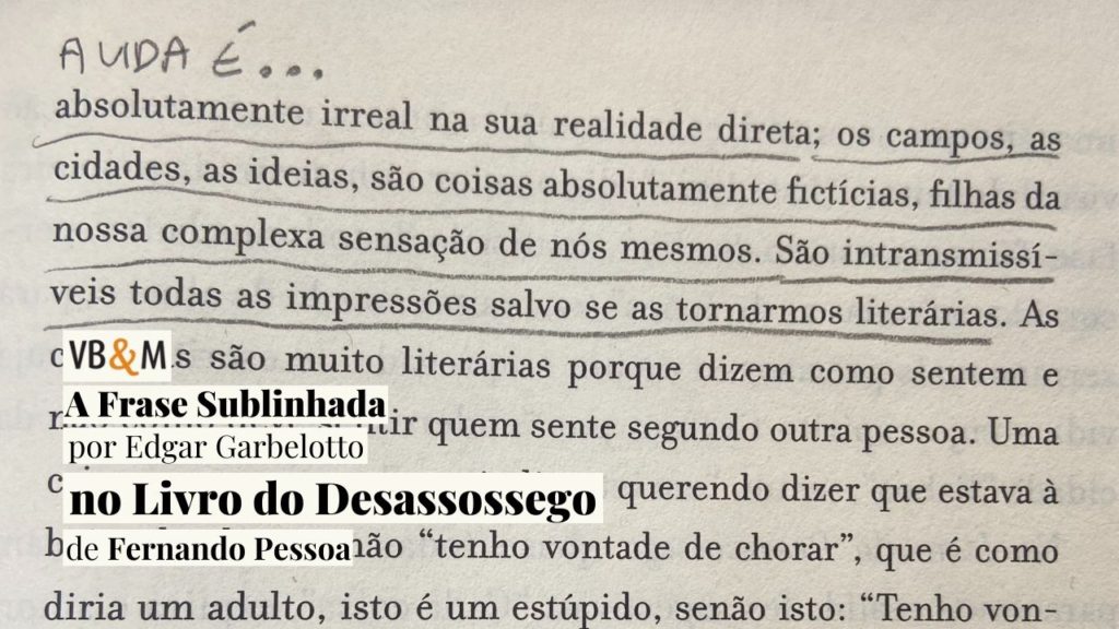 O escritor e tradutor Edgar Garbelotto, autor de um magistral romance ainda inédito, TERRA INCÓGNITA, oferece sua Frase Sublinhada na