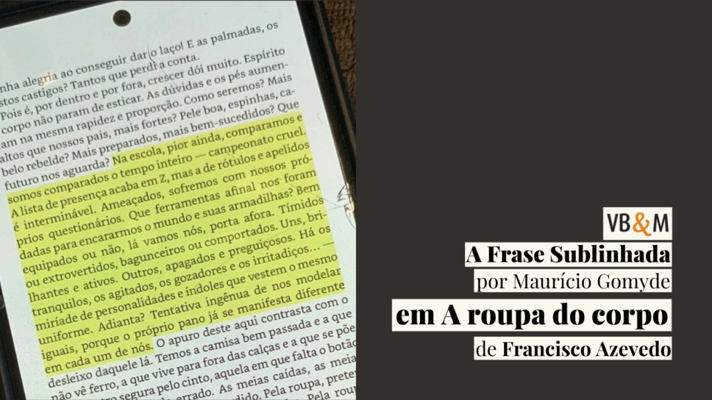 Autor de CIDADÃO DE BEM (Qualis), Maurício Gomyde oferece sua Frase Sublinhada em A ROUPA DO CORPO (Record), do colega