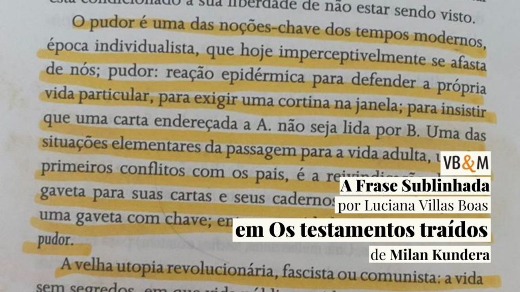 A FRASE SUBLINHADA de hoje vem da biblioteca de Luciana Villas Boas, “Os testamentos traídos”, de Milan Kundera, na edição